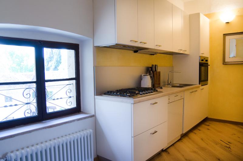 Open space con angolo cottura completamente attrezzato e corredato di tutto il necessario.