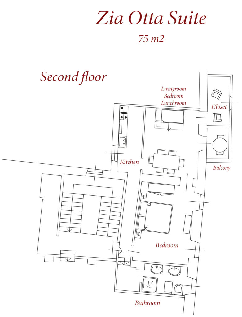 “Zia Otta” è una romatica Suite con terrazza dalla quale potrete godere della vista sul parco e i vigneti della Valpolicella, posta al secondo piano della storica villa Betteloni, recentemente ristrutturata con materiali naturali e bio, la pavimentazione è in legno, gli arredi antichi sono gli originali della residenza.
